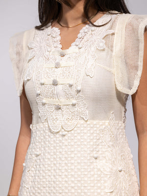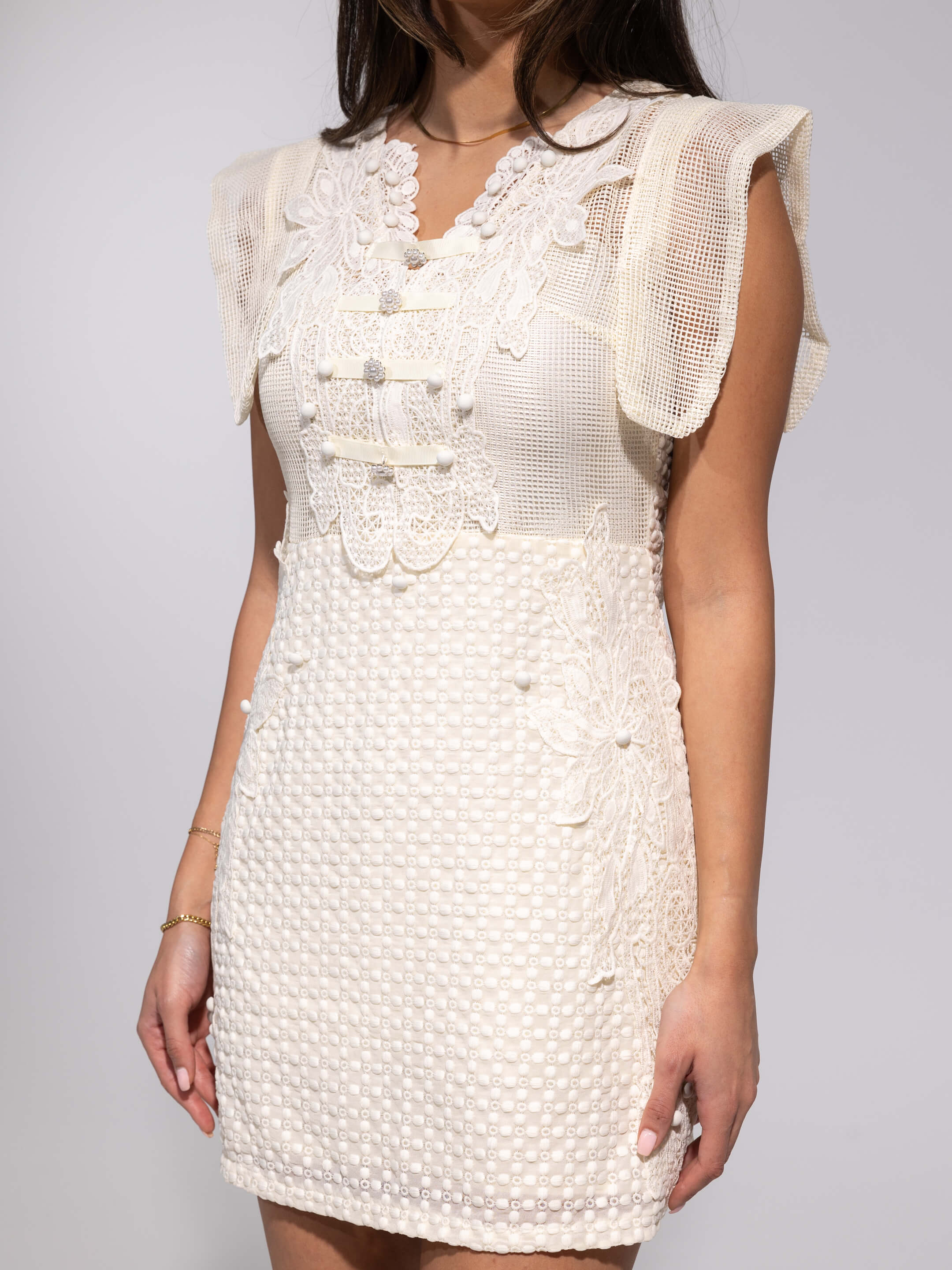 • Design: Feminine mini dress with lace details