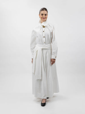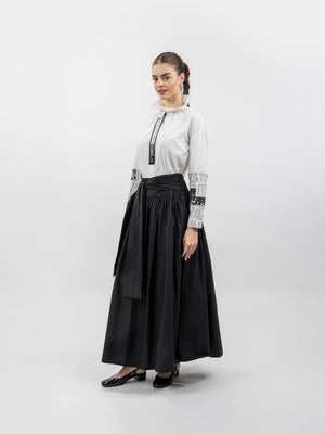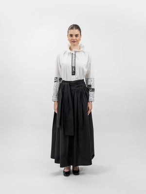 - Design: Full-length skirt with adjustable wrap-around waist tie