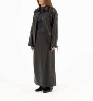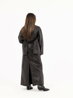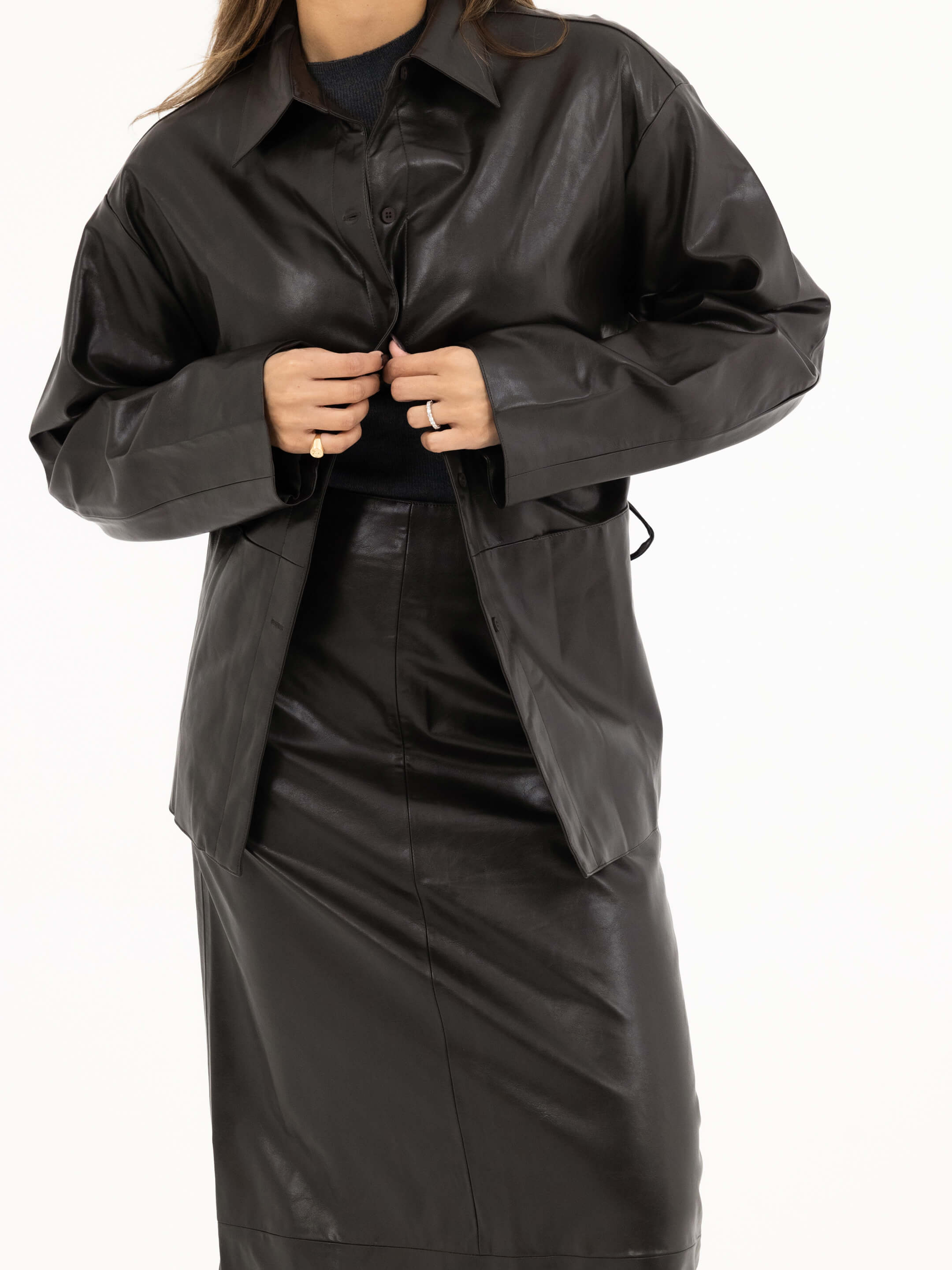 • Design: Button-up jacket with matching long skirt