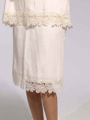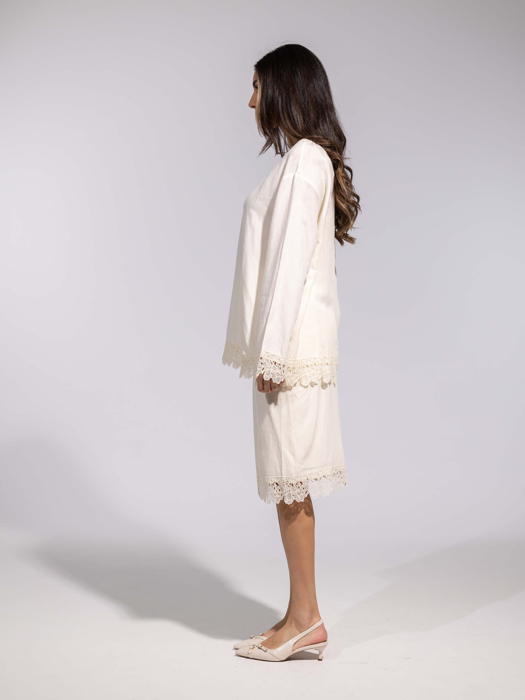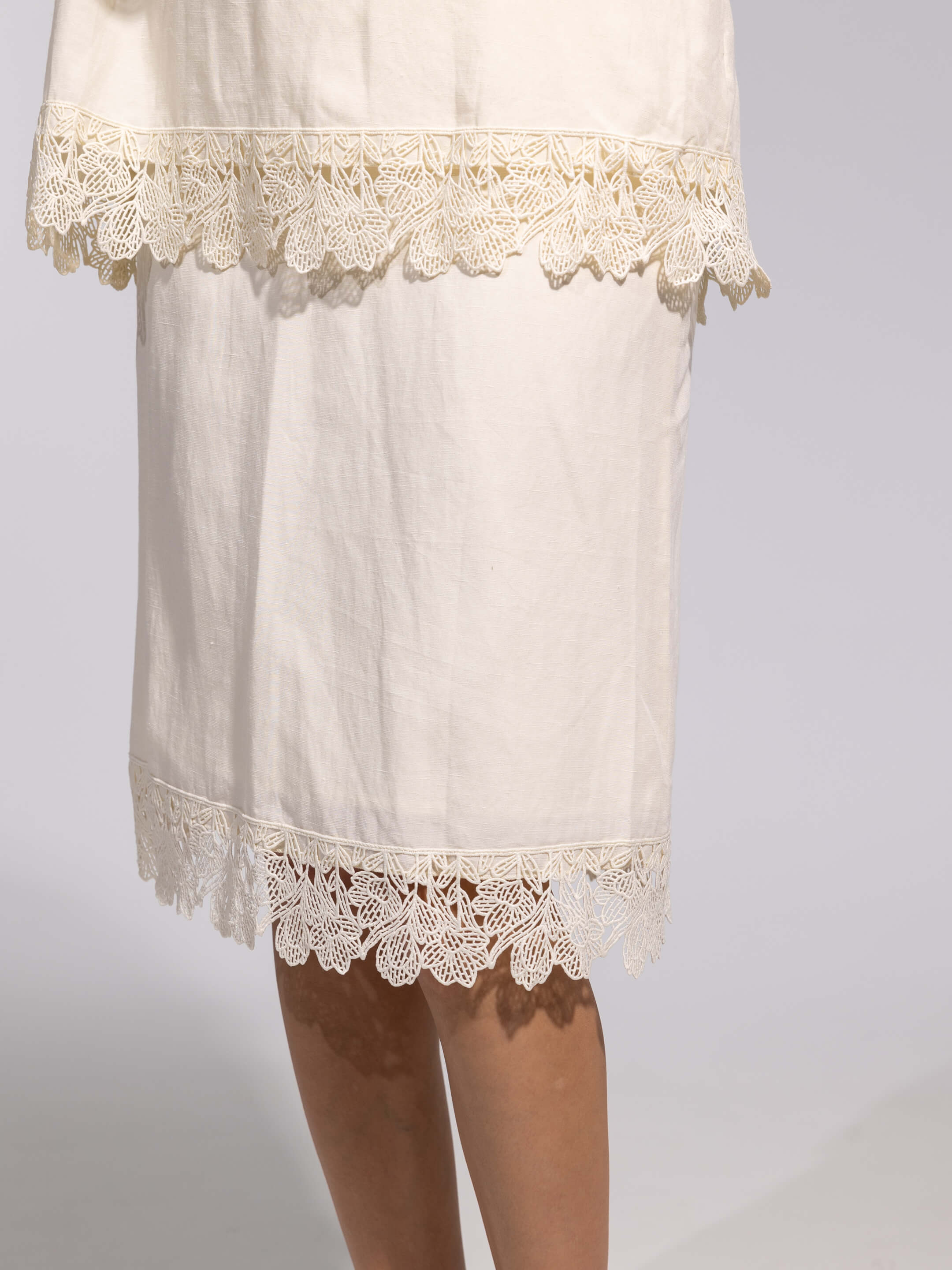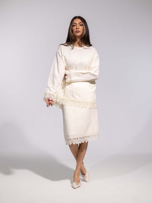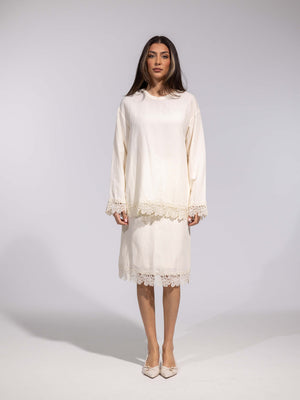 Design: Elegant two-piece set with relaxed top and straight skirt