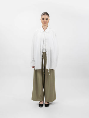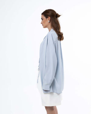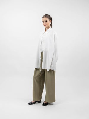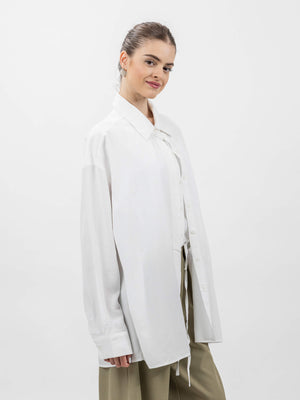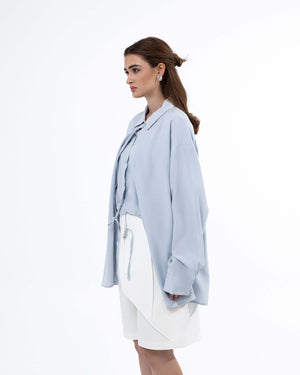 - Design: Button-down shirt with inner cropped top and adjustable tie detail.