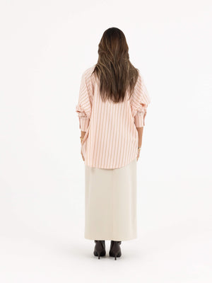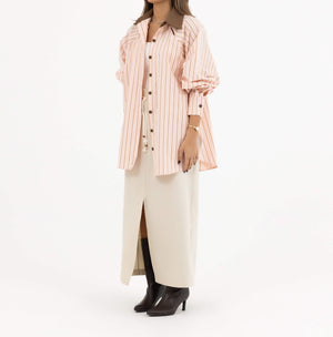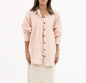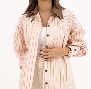 - Details: Front buttons, long sleeves with cuffs, contrast collar