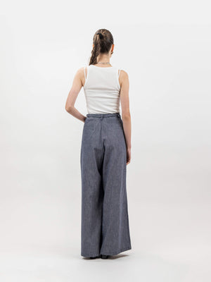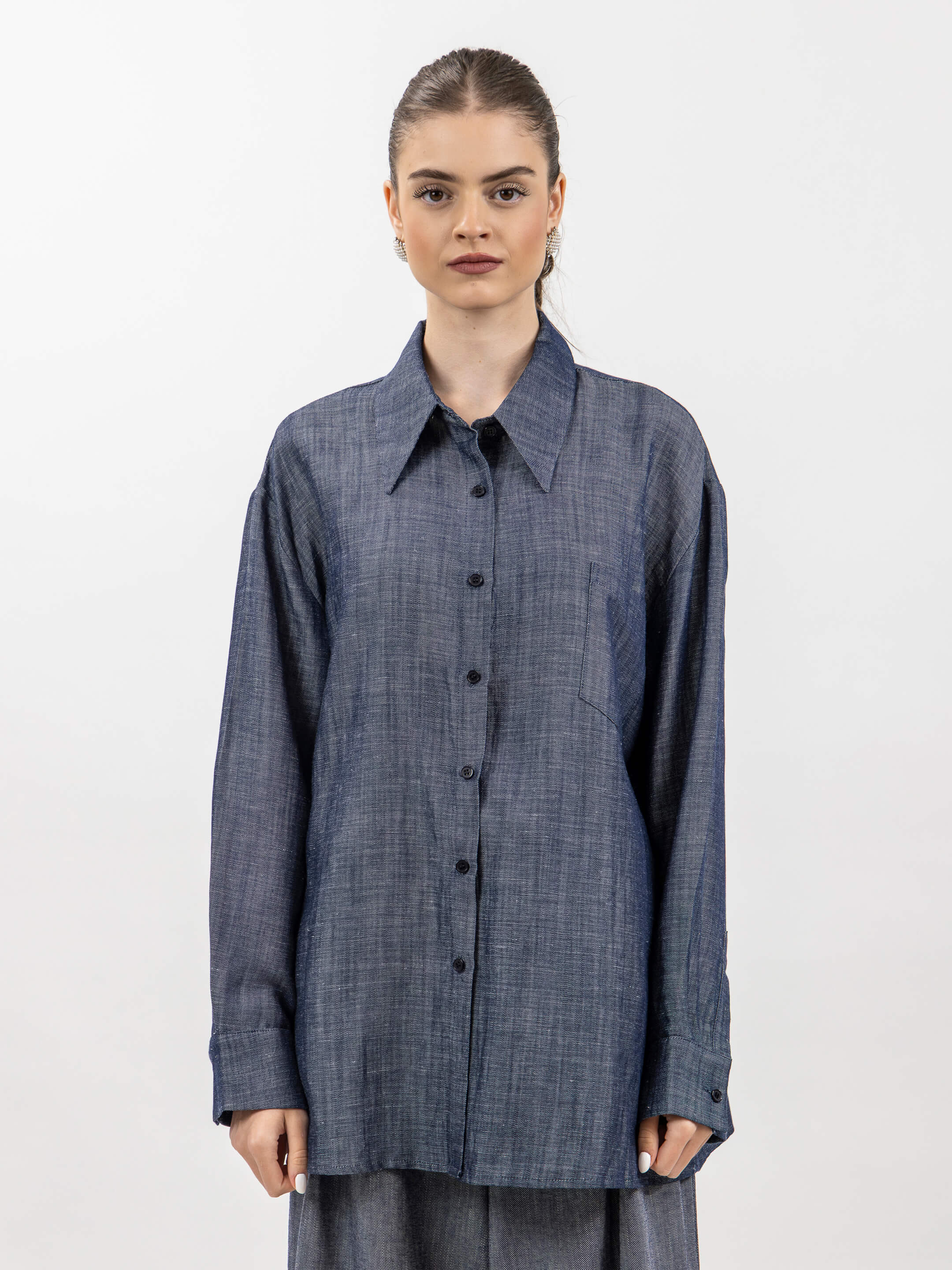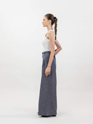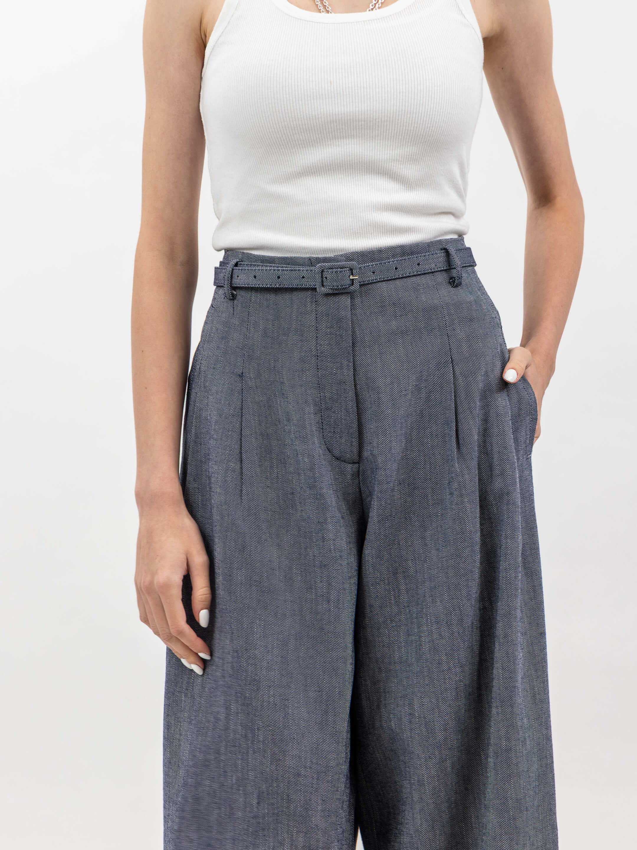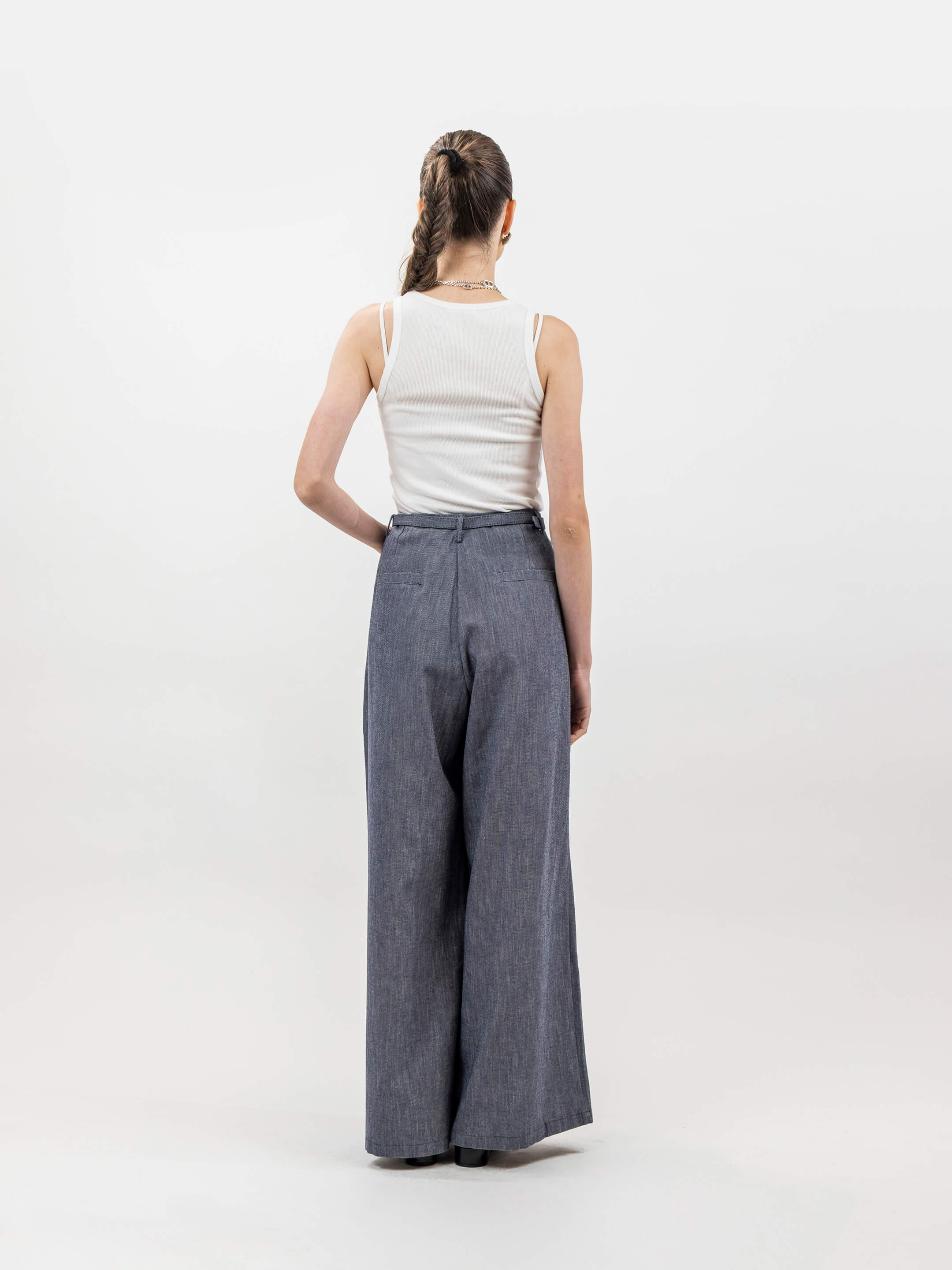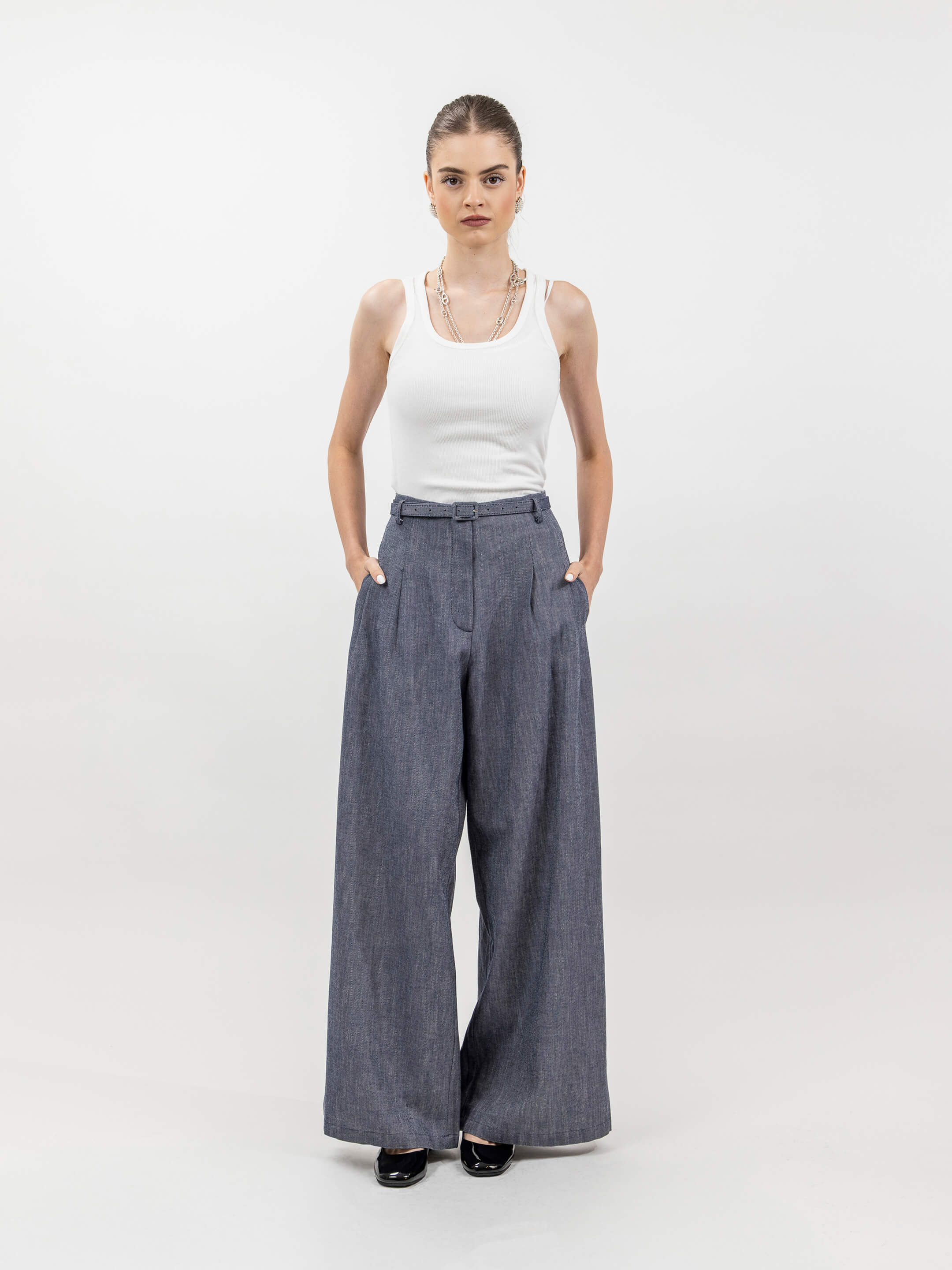 - Cut: Relaxed fit shirt with dropped shoulders, wide-leg pleated pants