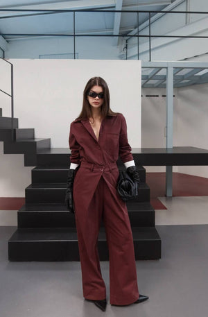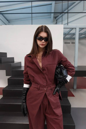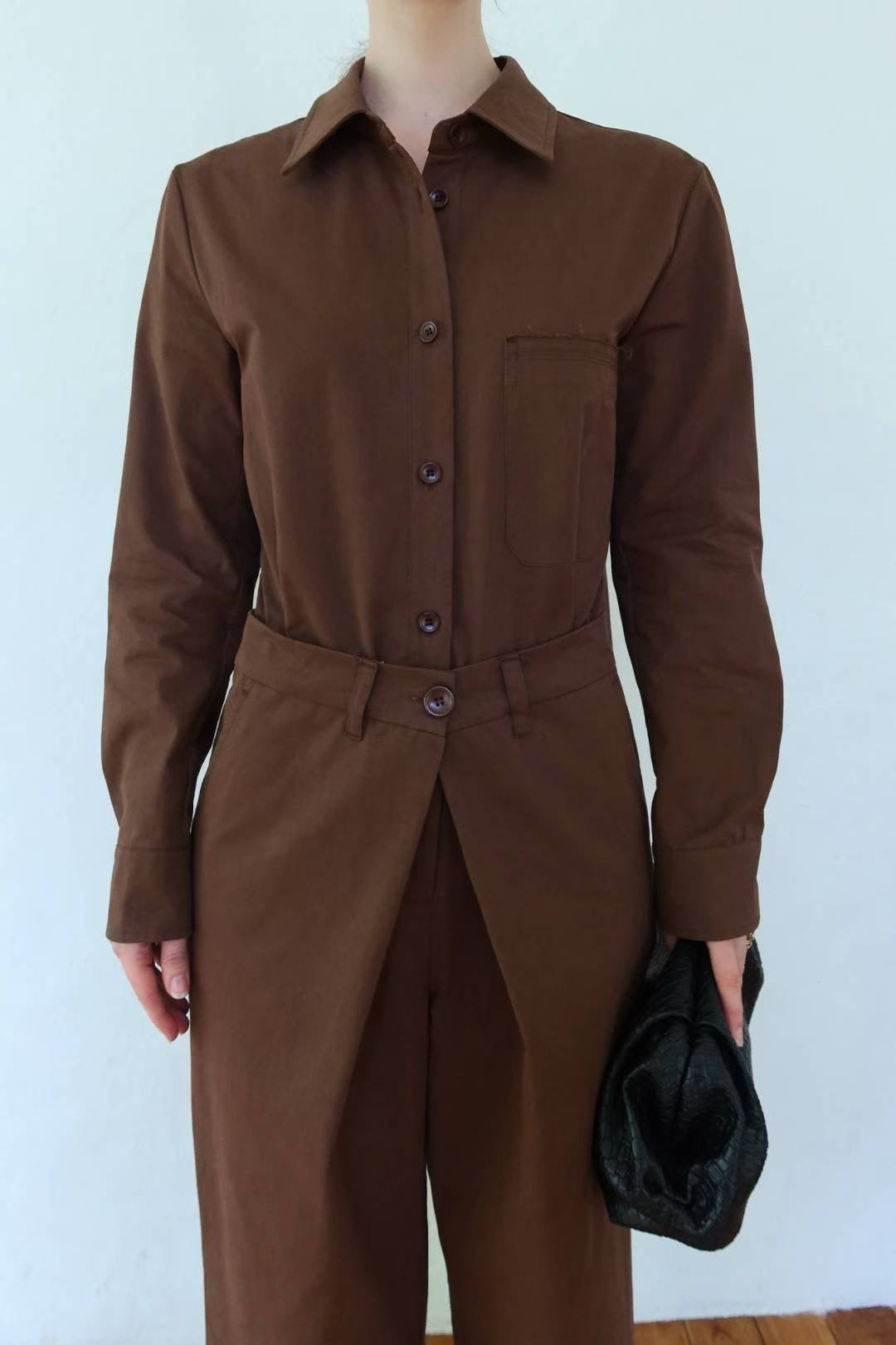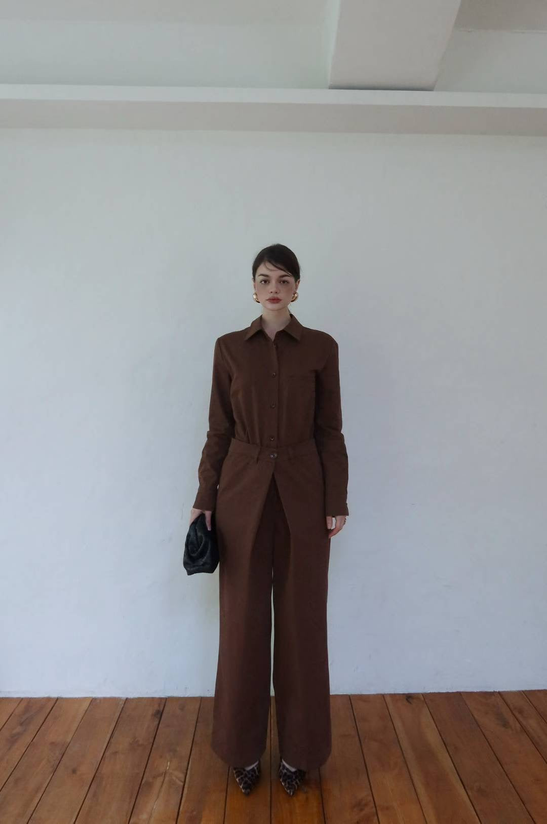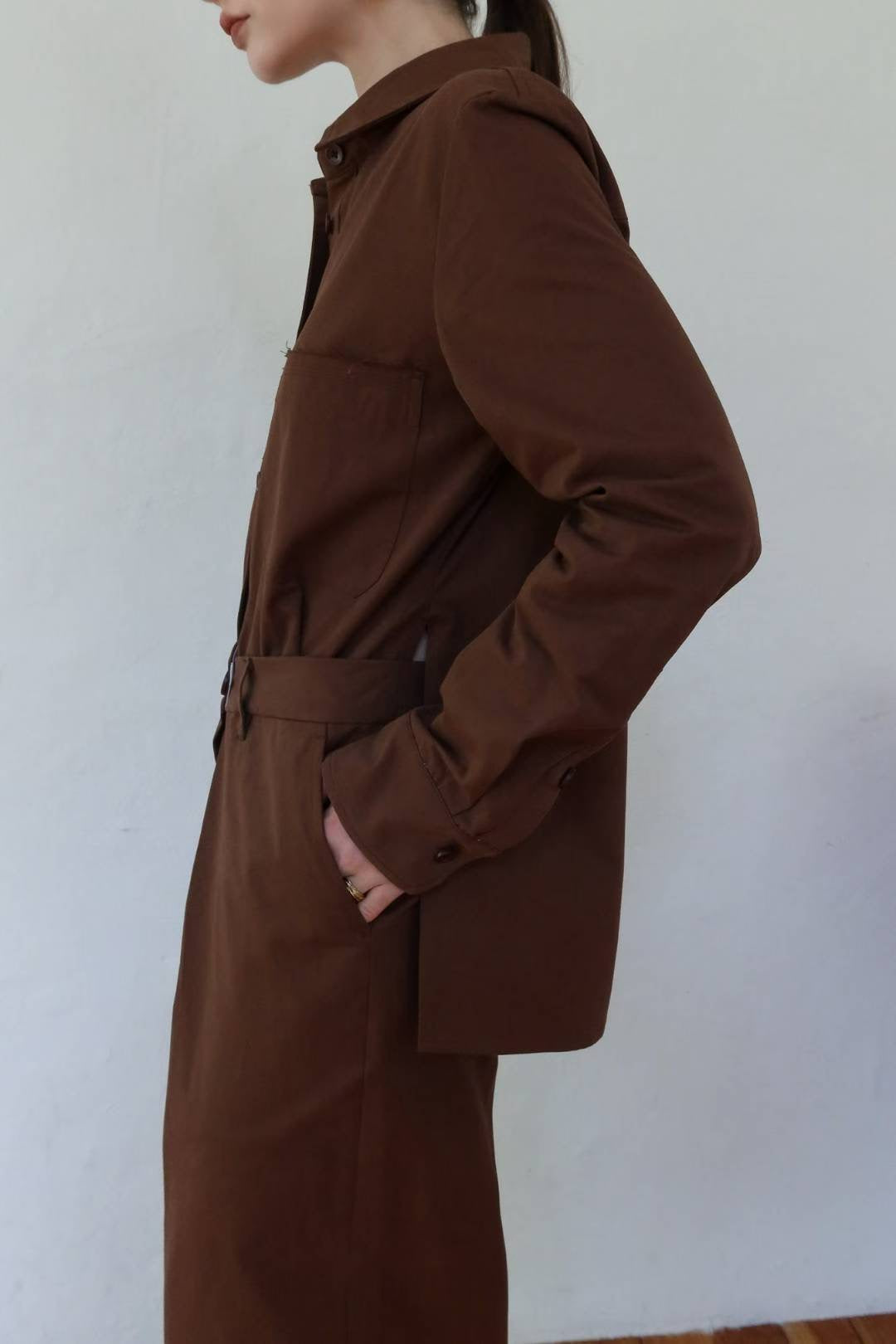 Details: Front buttons, chest pocket, wide cuffs, side pockets